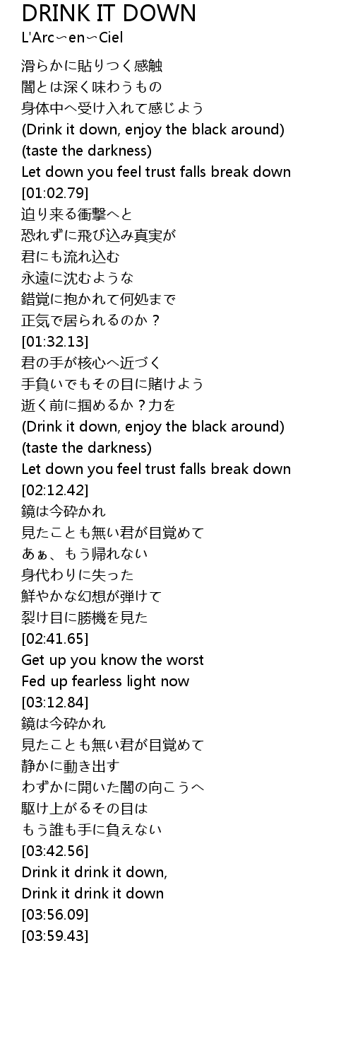| [01:59.20] | (Drink it down, enjoy the black around) |
