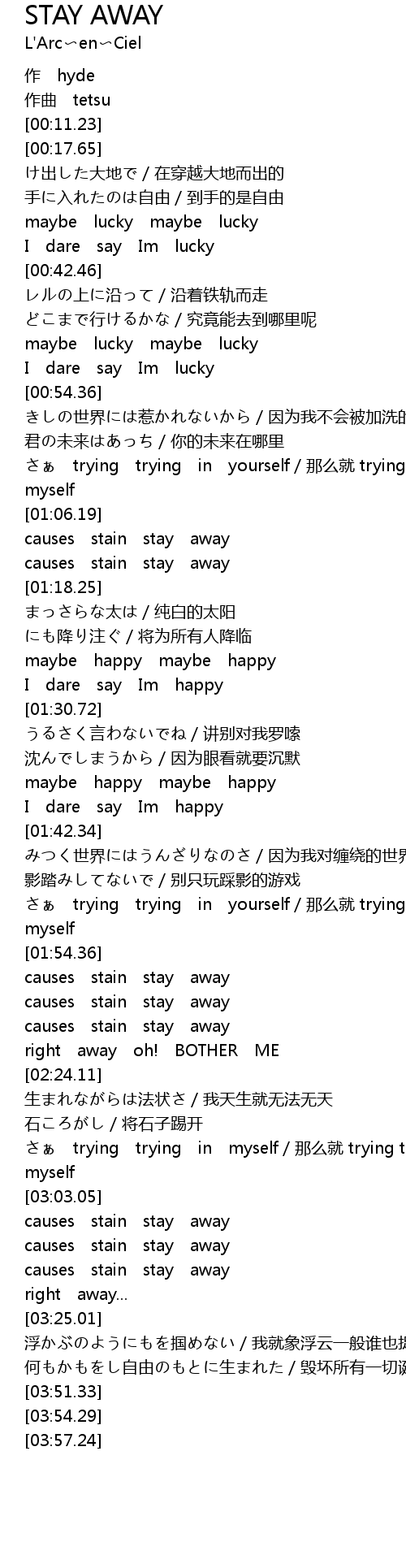 | [03:00.68] | さぁ trying trying in myself/那么就 trying trying in myself |