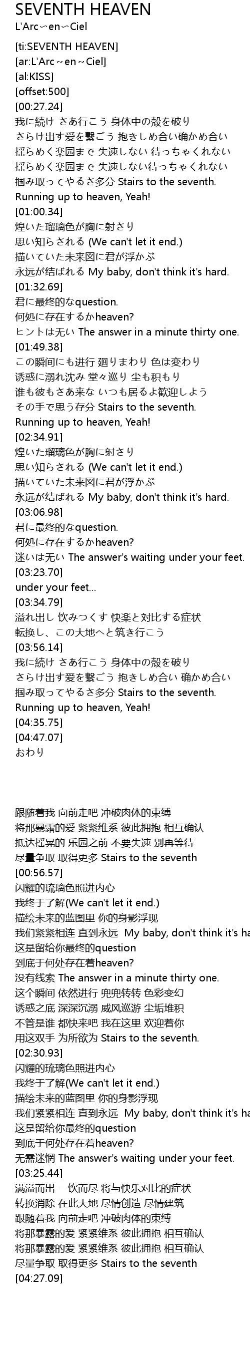 | [02:25.35] | その手で思う存分 Stairs to the seventh. |