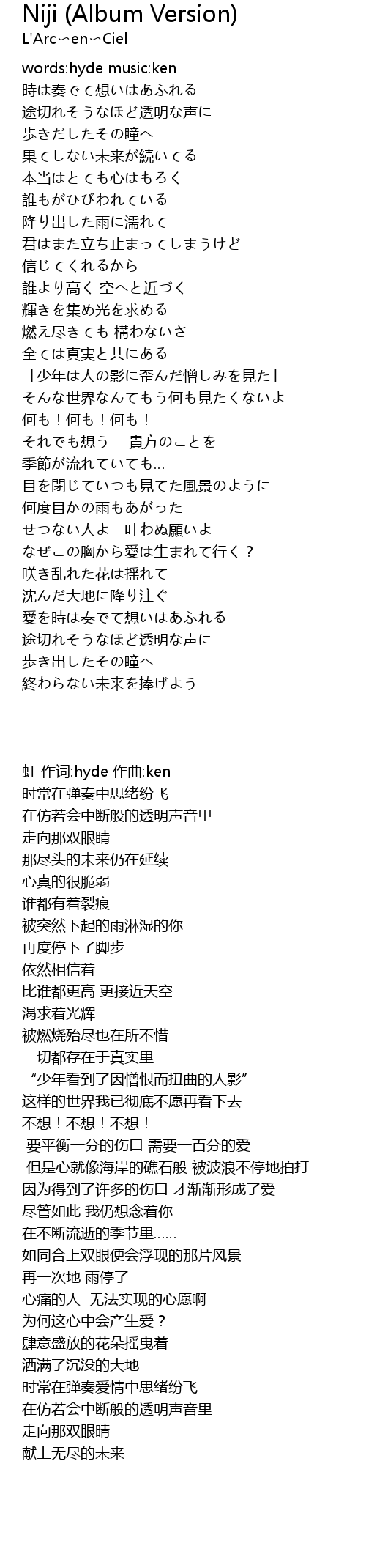 | [00:01.00] | words:hyde music:ken |