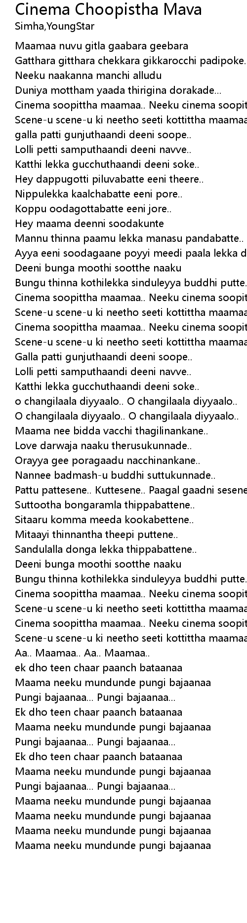 | Maama neeku mundunde pungi bajaanaa |