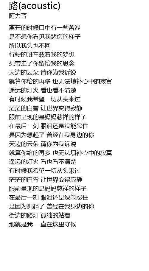 | [00:20.38] | lí kāi de shí hòu kǒu zhōng yǒu yī xiē kǔ sè |