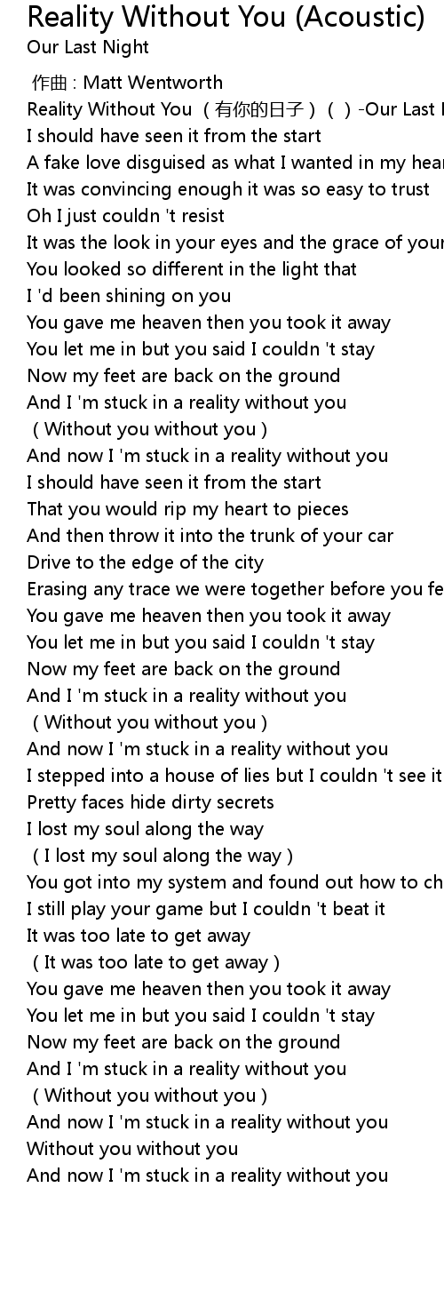 | [00:00.00] | Reality Without You you ni de ri zi Our Last Night |