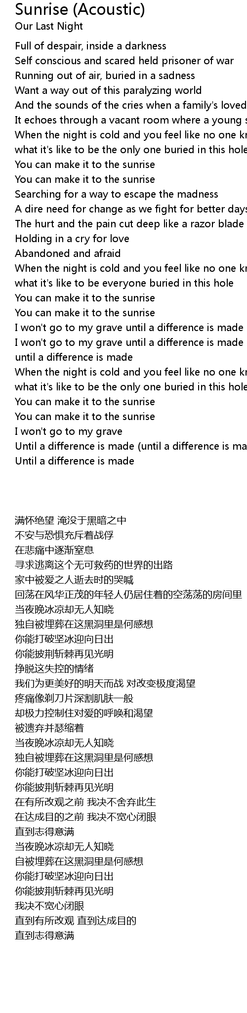 When the night is cold and you feel like no one knows |