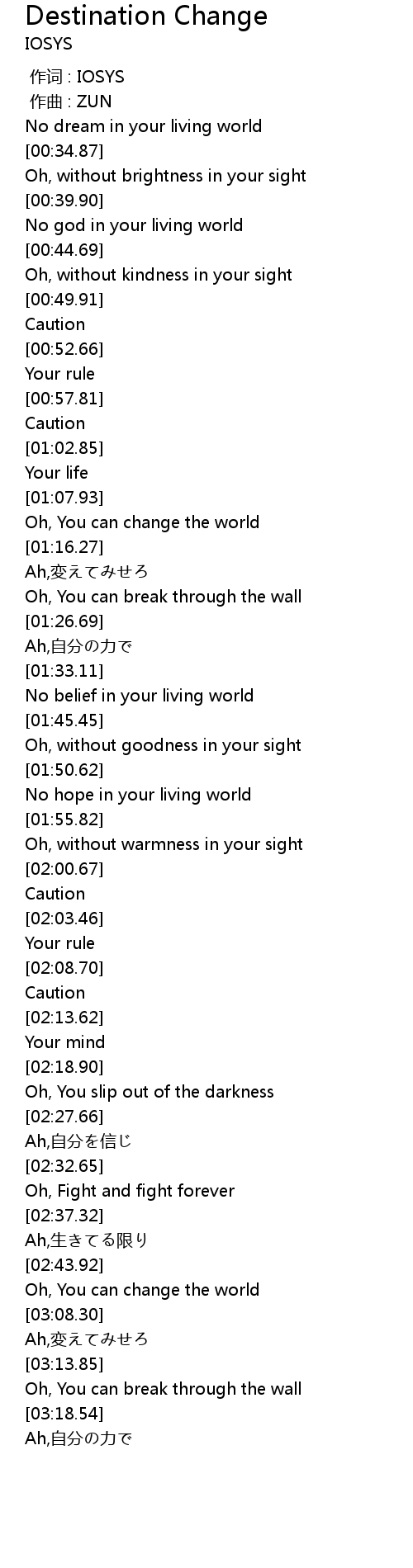 | [03:09.47] | Ah,変えてみせろ |