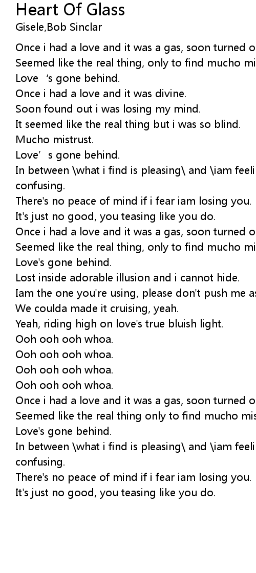 | Once i had a love and it was a gas, soon turned out had a heart of glass. | |