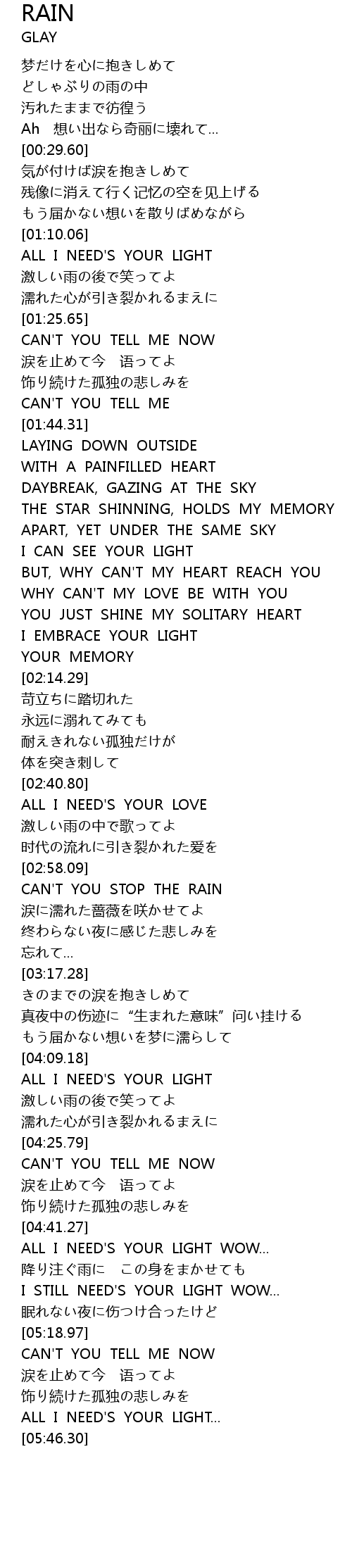 | [02:58.54] | CAN'T YOU STOP THE RAIN |