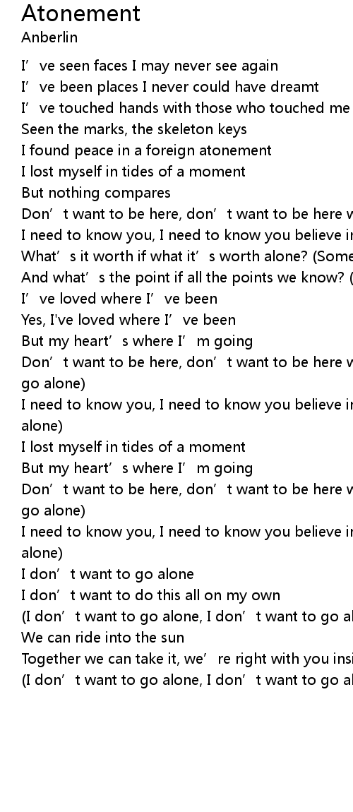 | (I don’t want to go alone, I don’t want to go alone) | |