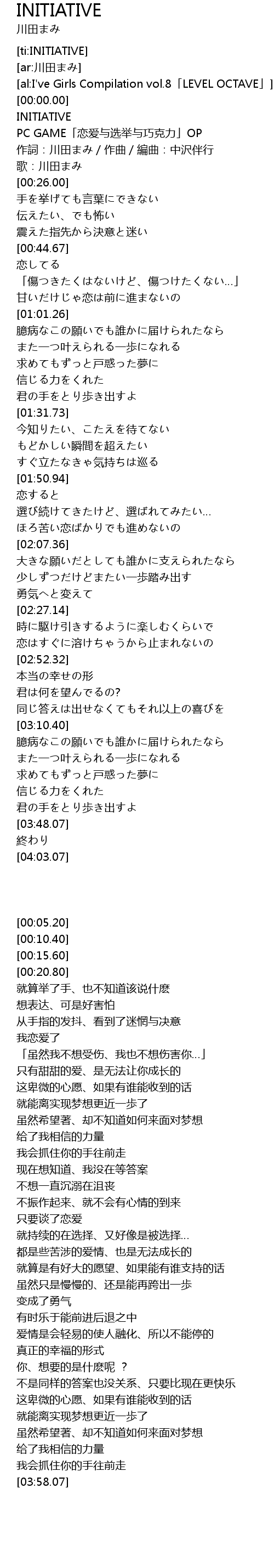 | [00:10.40] | PC GAME「恋爱与选举与巧克力」OP |