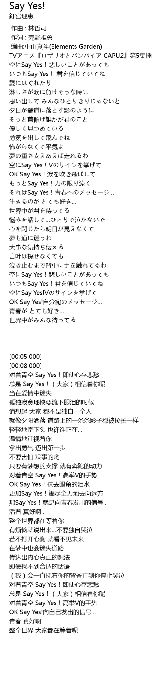 | [01:48.660] | Say Yes! lì xiàn yuǎn |