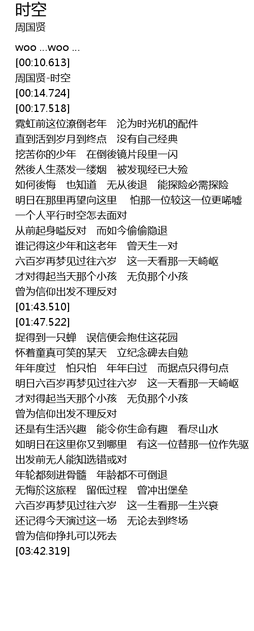 | [01:05.827] | 一个人平行时空怎去面对 |