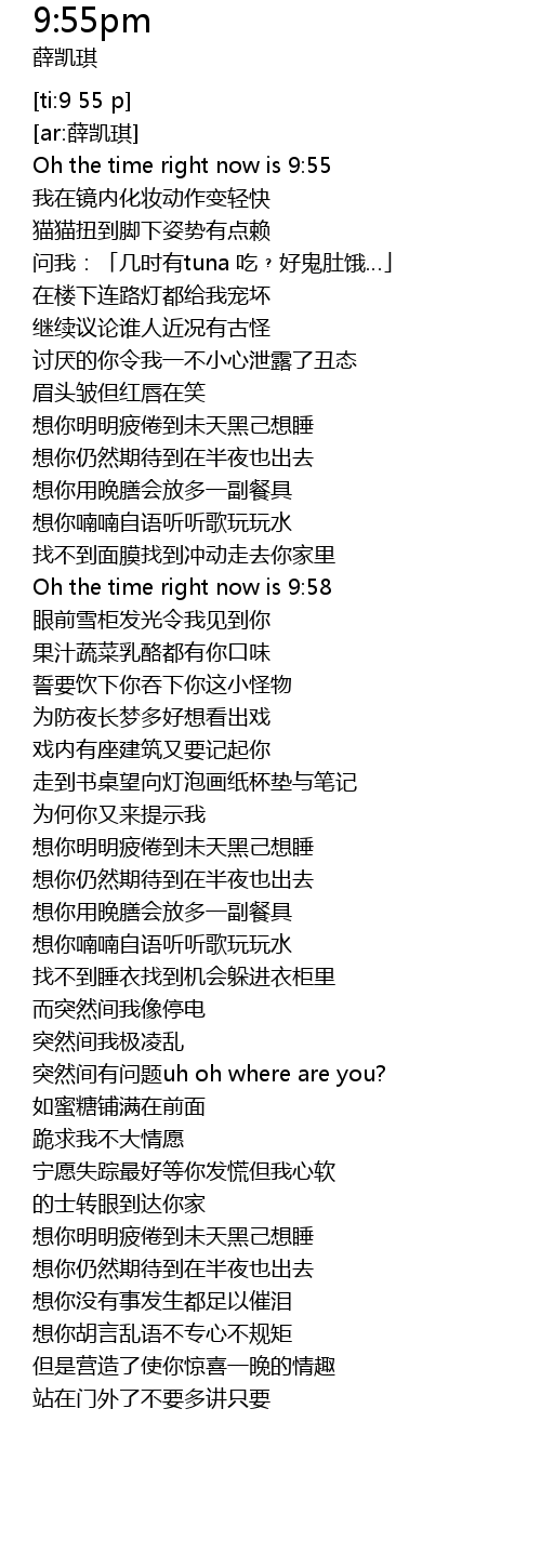 | [00:02.794] | Oh the time right now is 9: 55 |