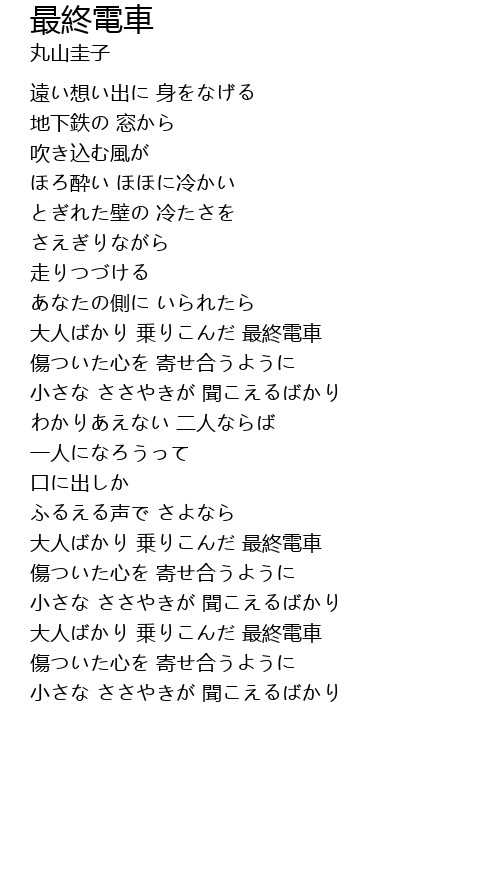 | 大人ばかり 乗りこんだ 最終電車 | |