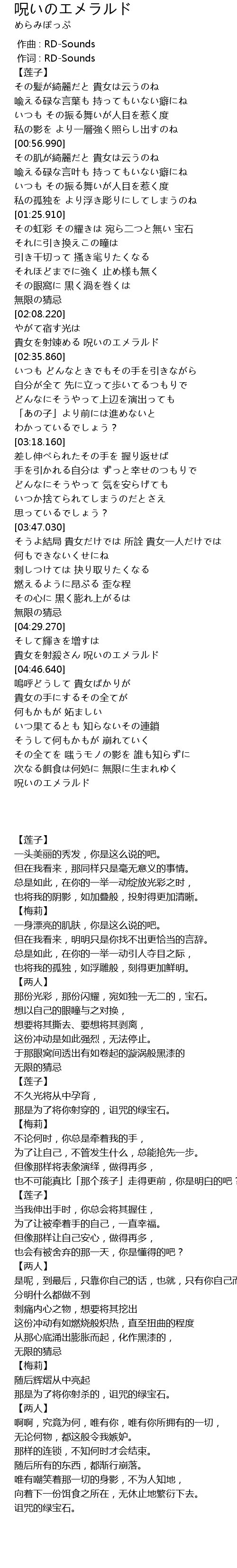 | [02:15.610] | 貴女を射竦める 呪いのエメラルド |
