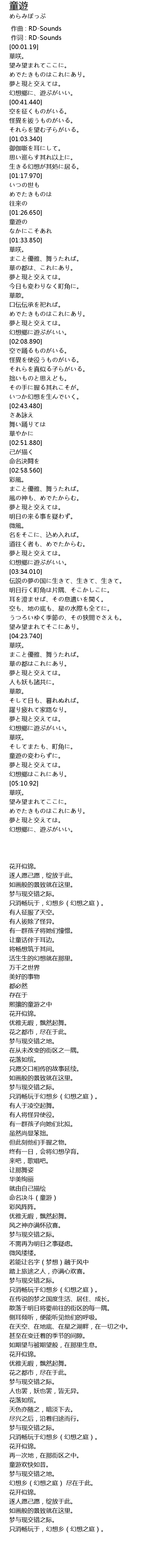 | [05:00.590] | 童遊の変わらずに。 |