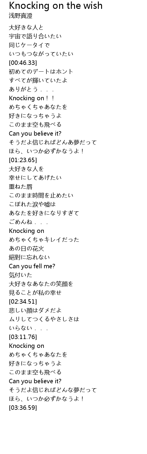 | Song | Knocking on the wish |