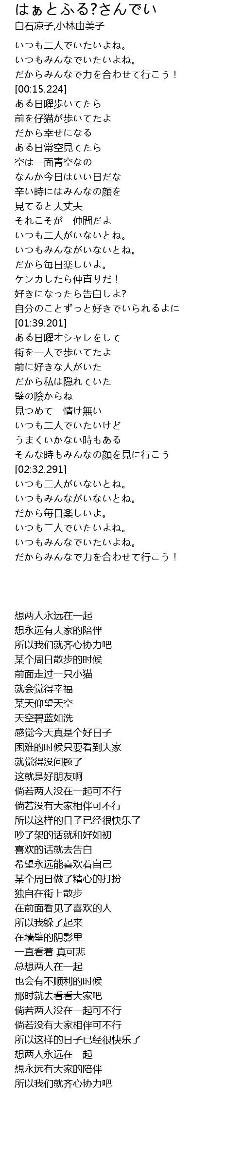 | [03:14.663] | いつも二人でいたいよね。 |