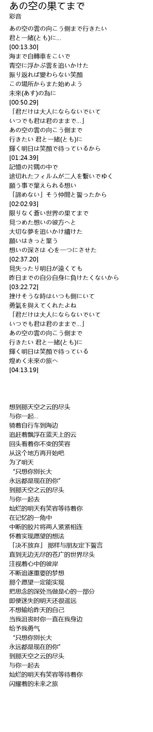 | [02:03.85] | 限りなく蒼い世界の果てまで |