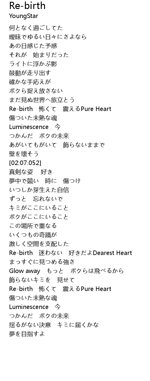 | [03:03.068] | Re-birth 迷わない 好きだよDearest Heart |