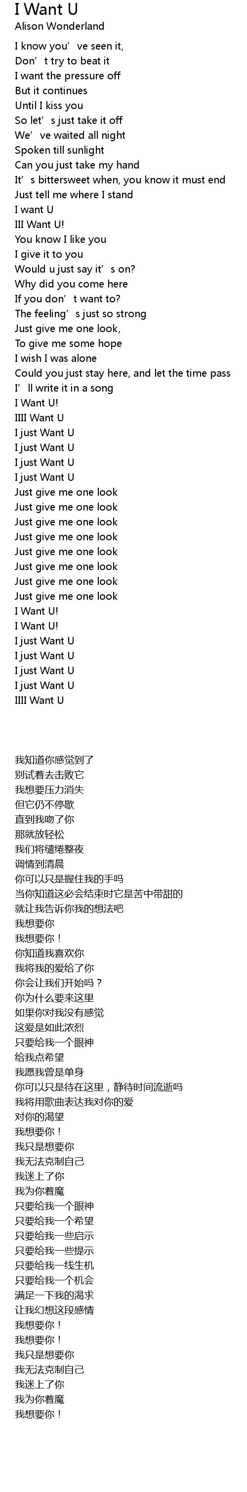 | [00:53.78] | I want U |