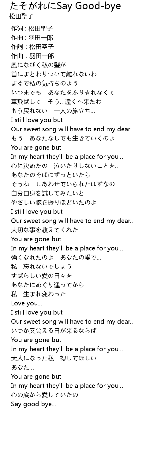 | [01:21.760] | Our sweet song will have to end my dear… |