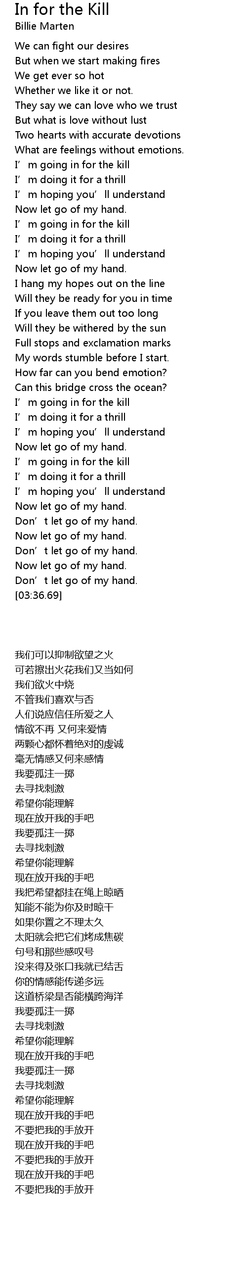 | [02:55.00] | I' m going in for the kill |