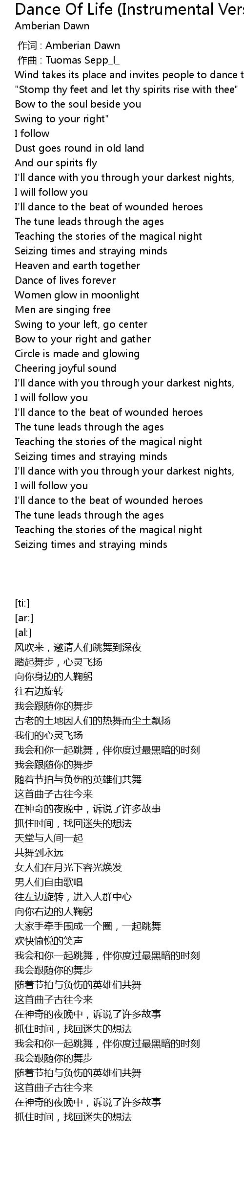 | [00:00.000] | zuò cí : Amberian Dawn |
