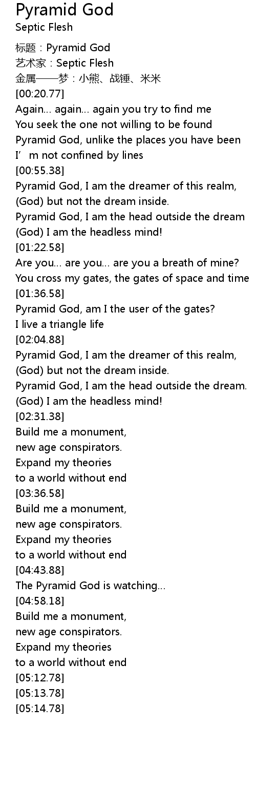 | [00:00.00] | biao ti: Pyramid God |
