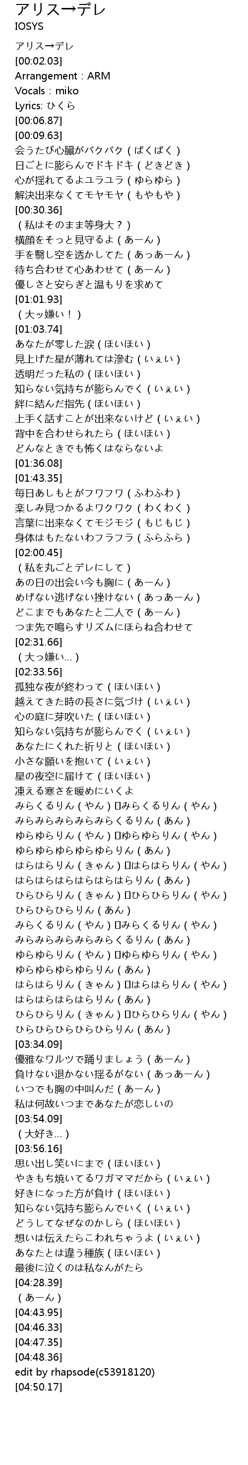 | [04:11.66] | どうしてなぜなのかしら(ほいほい) |