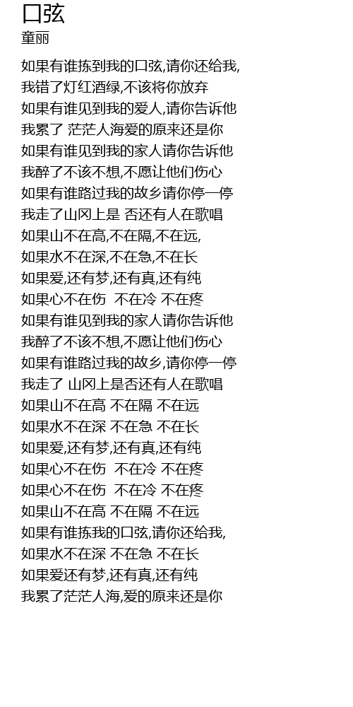 | [00:27.770] | 如果有谁拣到我的口弦,请你还给我, |