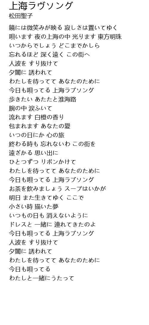 | Song | 上海ラヴソング |