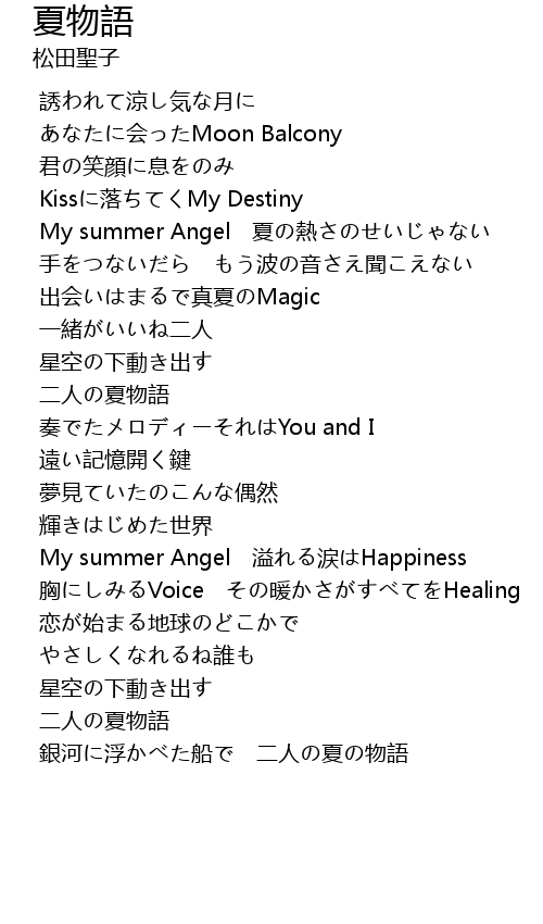 | [02:59.964] | 二人の夏物語 |