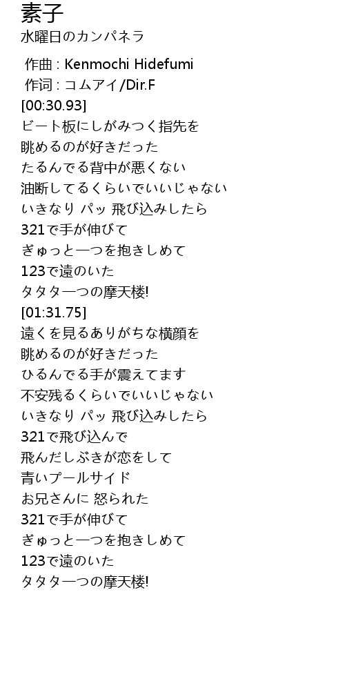 [00:00.00] 作曲 : Kenmochi Hidefumi