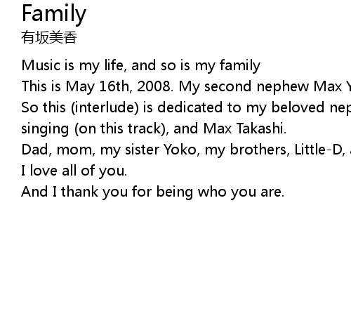 | So this (interlude) is dedicated to my beloved nephews, Alex Yoshito, who's singing (on this track), and Max Takashi. | |