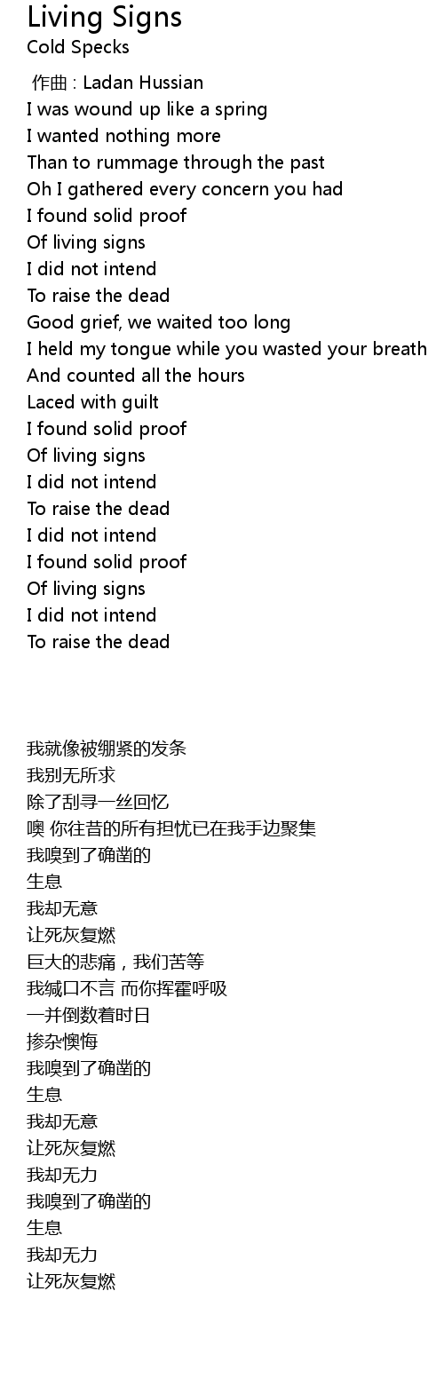 | [02:13.100] | Of living signs |