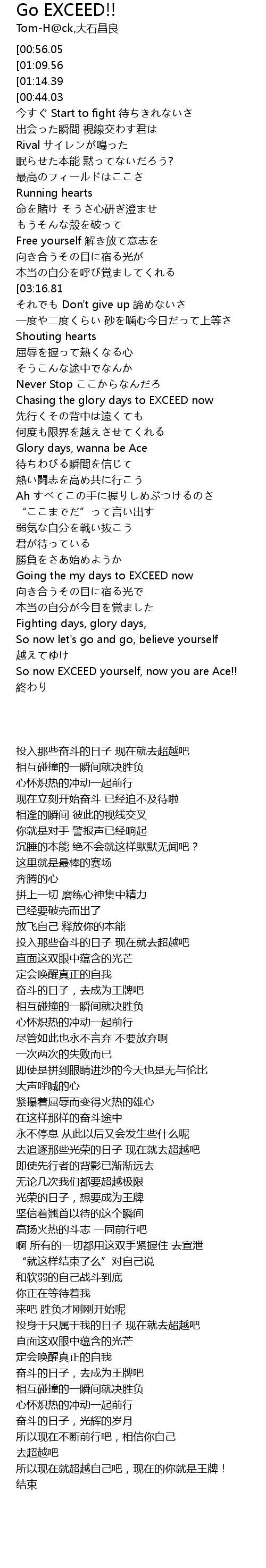 | [03:45.52] | So now EXCEED yourself, now you are Ace!! |