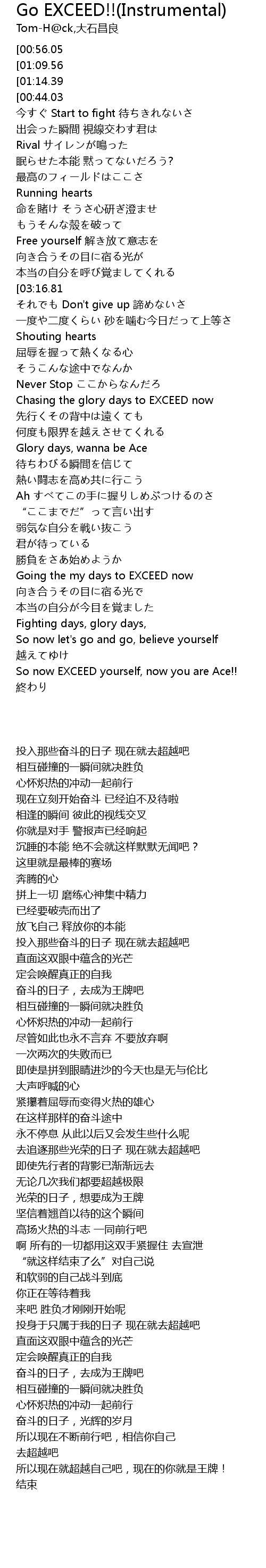 | [03:45.52] | So now EXCEED yourself, now you are Ace!! |