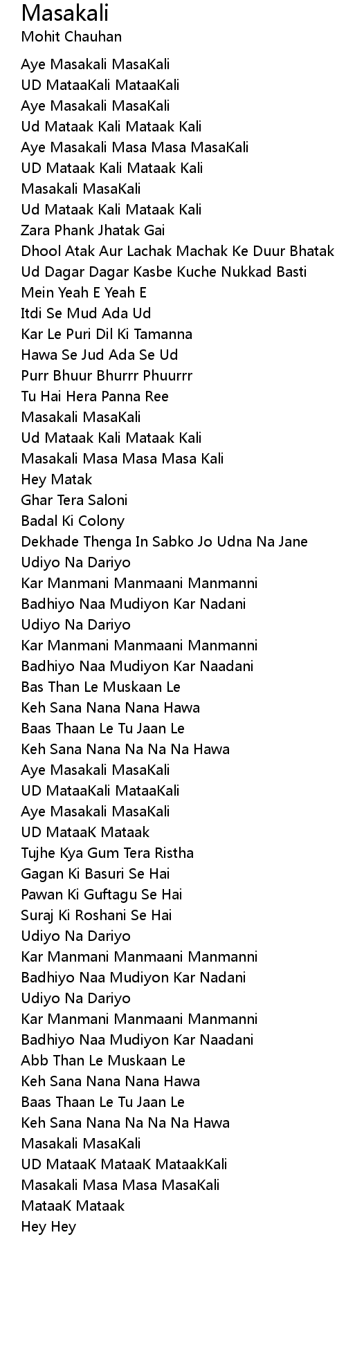Masakali Masa Masa MasaKali |