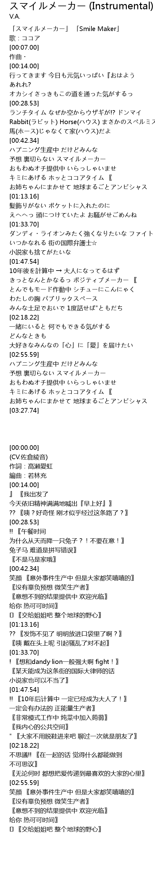 | [00:00.00] | 「スマイルメーカー」 「Smile Maker」 |