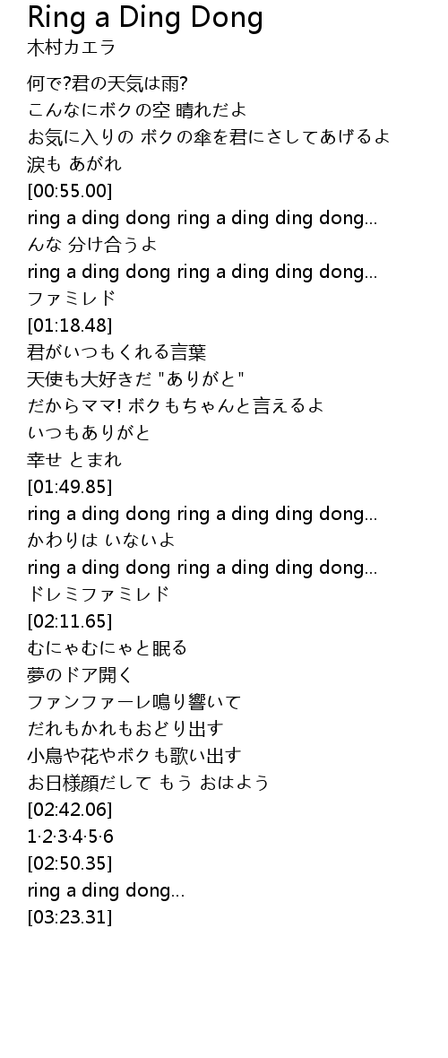 | [01:50.55] | ring a ding dong ring a ding ding dong... |