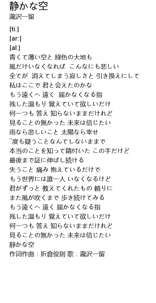 | [03:58.12] | 靜かな空 |