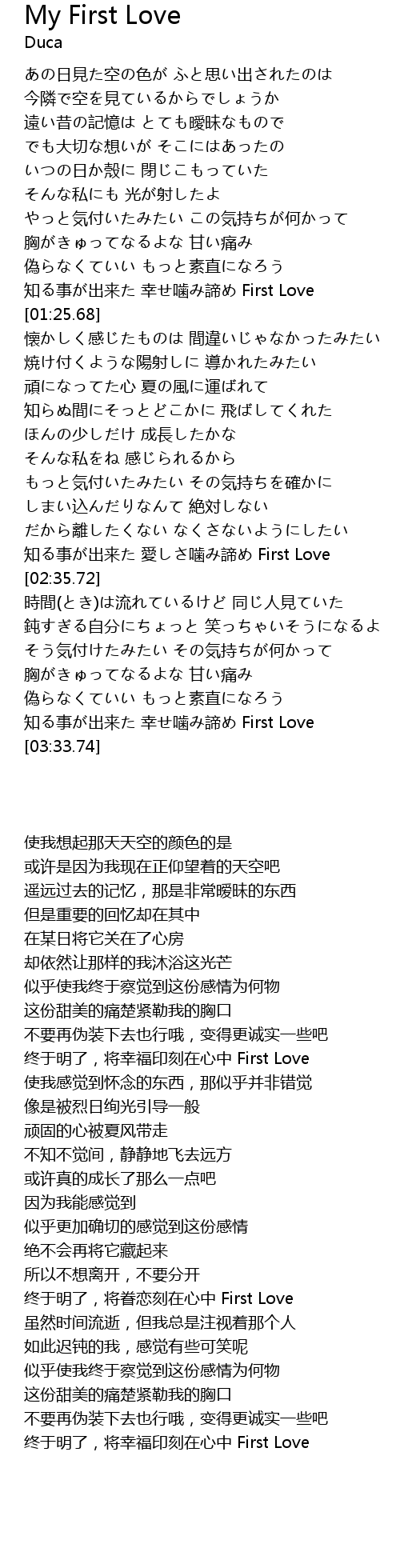 | [01:16.77] | 知る事が出来た 幸せ噛み諦め First Love |