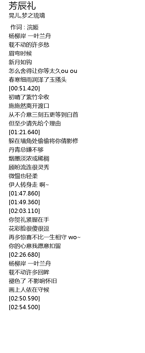 | [02:27.530] | 杨柳岸 一叶兰舟 |