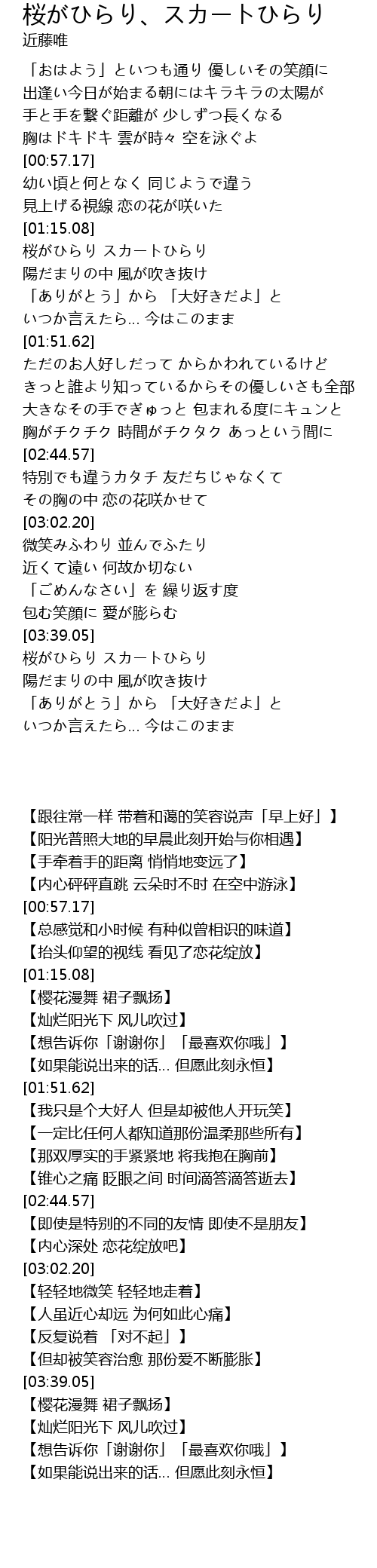 | [00:49.63] | 胸はドキドキ 雲が時々 空を泳ぐよ |