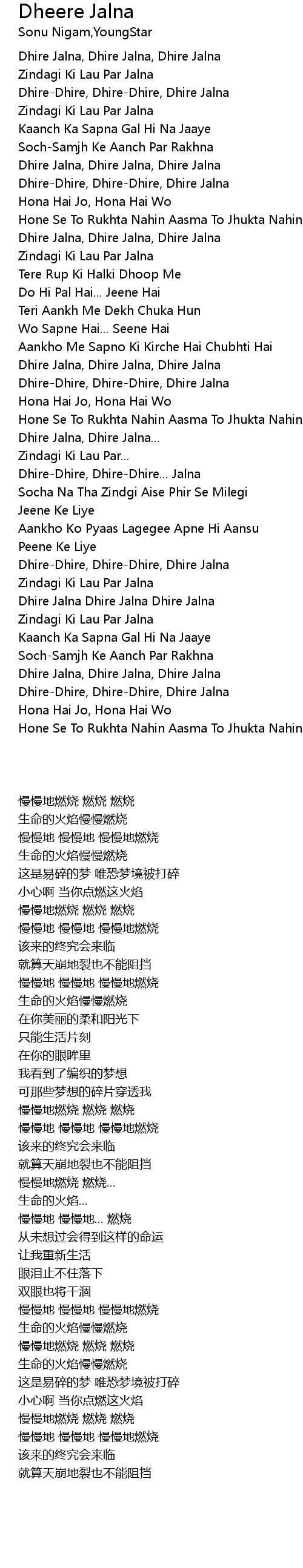 | [00:59.906] | Dhire Jalna, Dhire Jalna, Dhire Jalna |