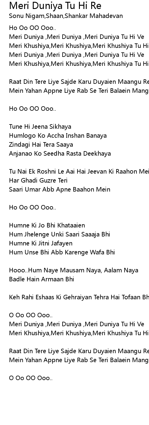 Meri Duniya ,Meri Duniya ,Meri Duniya Tu Hi Ve |