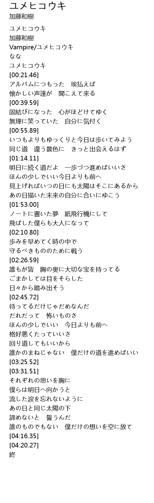 | [00:01.71] | ユメヒコウキ |
