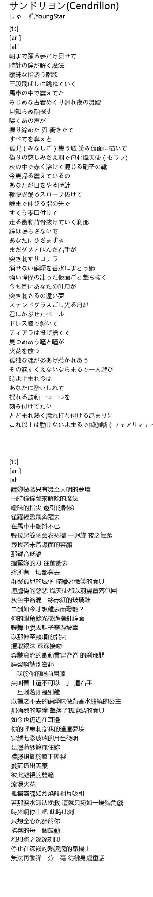| [01:03.05] | みじめな古着めくり廻れ夜の舞踏 |