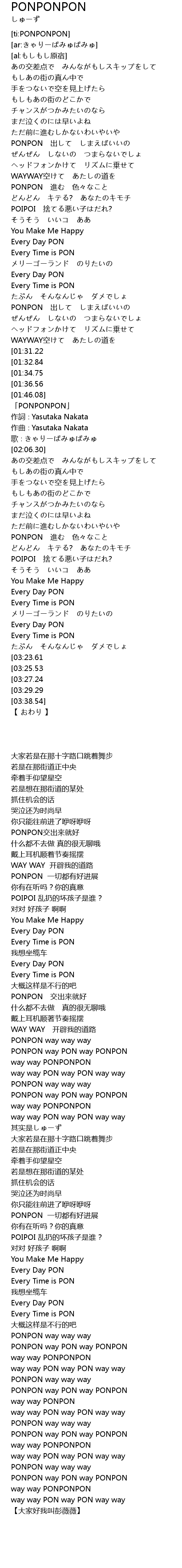 | [01:38.51][01:31.22] | PONPON |