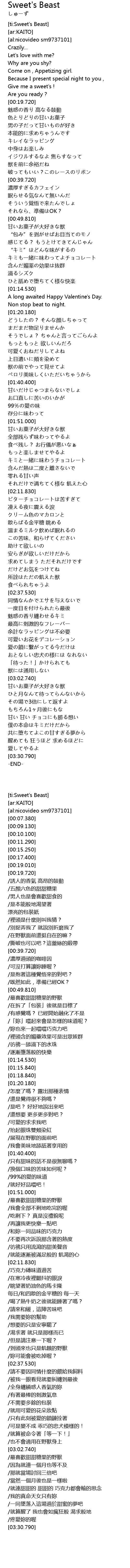 | [03:03.440] | 甘いお菓子が大好きな獣 |
